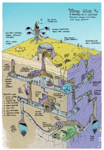 A ambientação é aberta, mas coerente. Inspirada nas mecânicas de hexcrawl, Rejec criou um sistema onde cada ponto da jornada (ou “pointcrawl”) esconde mistérios, artefatos e encontros que desafiam tanto a mente quanto a sobrevivência física dos personagens.